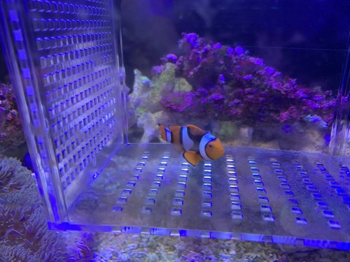 1日数分の淡水浴を何日か繰り返すことになります。毎日魚を捕まえるのはストレスを与えるうえに、大変なので治療期間中は隔離ボックスで過ごしてもらいます。