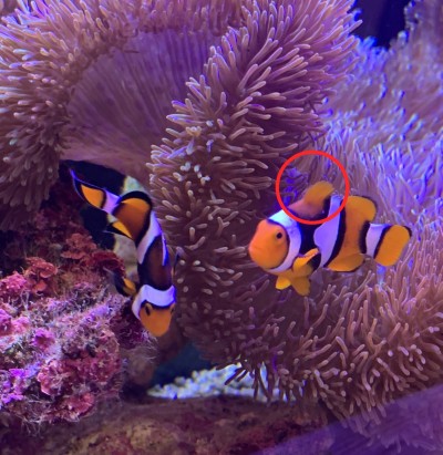 白点病も怖いけど、実はこの“膜”状の病気(トリコディナ病)がクマノミではもっと恐ろしいかもしれません。知らなかったらこの病気を見逃して「ある日突然死んでしまった」という結末を迎えることも多く、知名度以上に警戒すべき病気でもあります。